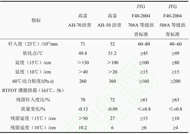 表1高富AH-50、高富AH-70瀝青性質分析